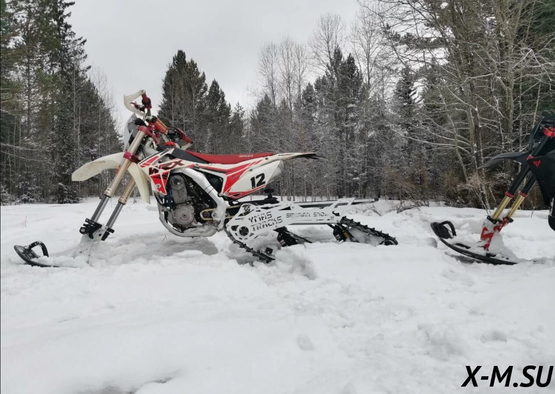 SiberianSnow от YmasTracks — универсальный гусеничный комплект для внедорожных мотоциклов. Гусеничный мотоцикл (СНОУБАЙК) это, по сути, одноколейный снегоход. Вы получаете возможность продлить мото сезон и эксплуатировать мотоцикл не только летом но и зимой.